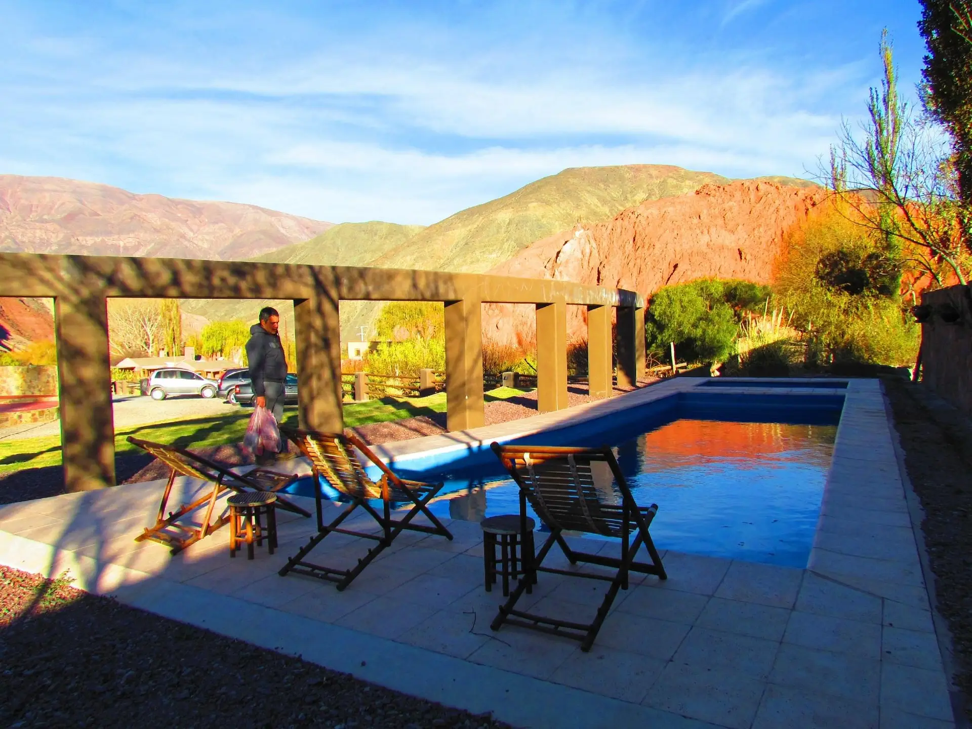 En Casa de Adobe contamos con una piscina pensada para disfrutar el hermoso paisaje. Rodeada de un entorno natural único y con vista privilegiada a los cerros de Purmamarca, es el lugar ideal para relajarte y conectarte con la tranquilidad del norte argentino.